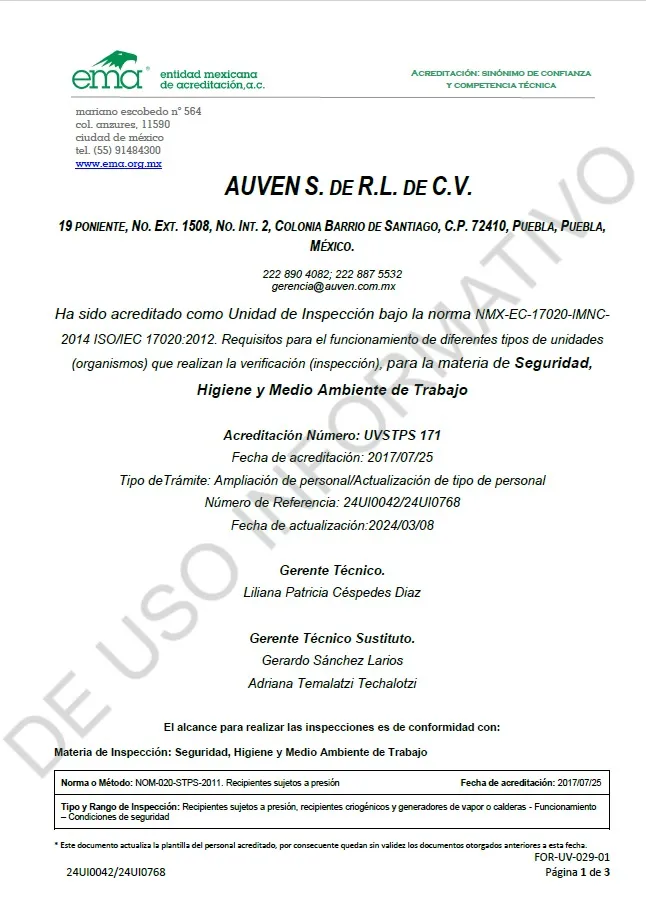 Auven es una empresa especializada en servicios de inspección de normas de seguridad.
